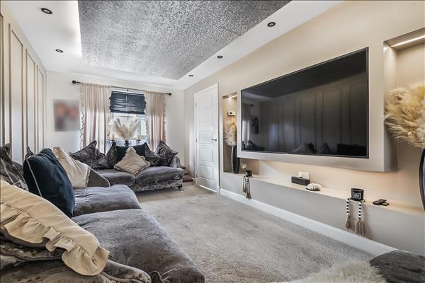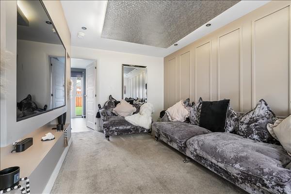 Internally this fabulous family home offers a flexible floorplan comprising of four good size bedrooms, three modern bathrooms (to include a downstairs w/c, master en-suite & main bathroom) and a very popular open plan kitchen dining with access out to the rear garden. The kitchen area has been fitted to include a great range of wall and floor mounted units as well as offering a great selection of integrated appliances. Off the kitchen there is additional access to the utility room which also offers access to the first of three bathrooms in the way of a two piece w.c. Enjoying views over the front of the property there is a bright and spacious lounge perfect for relaxing and entertaining. Across the hallway from the main lounge is a garage conversion currently used by owners as a family room although could be used as a home office or fifth bedroom.