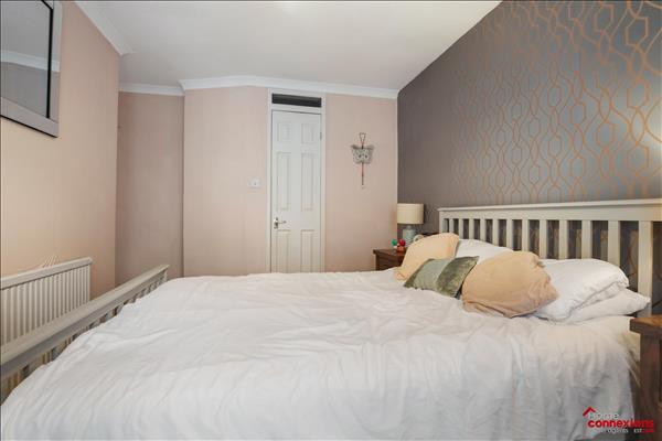 The upper level of the property offers a modern upgraded bathroom along with three bedrooms comprising of two generous sized doubles and a good sized single. The bedrooms benefit from fitted carpet, coving and space for free standing furnishings. Bedrooms one and three have the added bonus of fitted storage cupboards. The bathroom benefits from a three piece white suite incorporating an overhead shower complete with both wall and floor tiling as well as a fitted towel radiator. The property is further enhanced with a system of gas central heating and double glazing throughout.