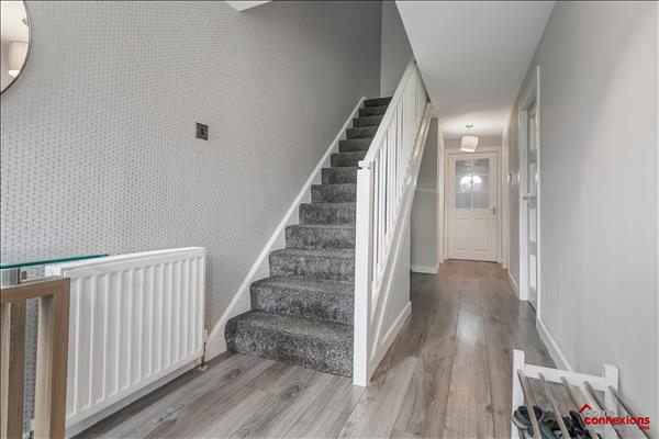 The property comprises of a welcoming reception hallway offering access throughout. The lower level of the property offers a spacious front facing lounge benefiting from laminate flooring which flows seamlessly throughout the lower level, perfect for relaxing and entertaining. The lounge also offers space for a dining suite if required perfect for formal and informal eating. The kitchen has been fitted to include a great range of wall and floor mounted units along with a complimentary worktops. It also offers a selection of integrated appliances, additional space for free standing appliances, and wall tiling, complete with tile flooring. The rear hallway also offers access to a lower level two piece w.c. and door access to the rear garden.