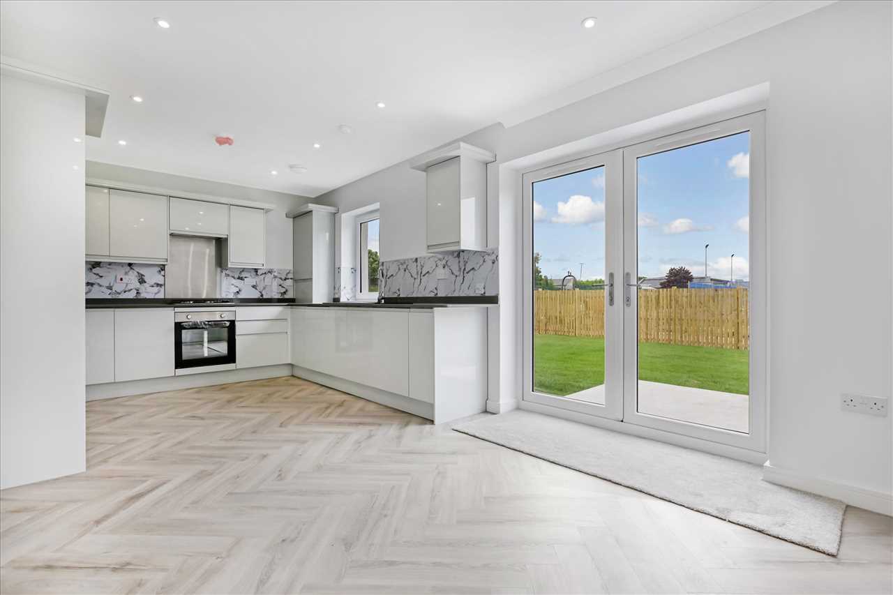 The reception hallway offers access throughout with the entrance level benefiting from a large front facing lounge and a fabulous open plan kitchen dining to the rear, enhanced with sliding doors and windows. The kitchen also benefit from great range of wall and floor mounted units along with a range of high spec quality fixtures and finishings throughout. There are three luxury bathrooms comprising of a two piece w.c. the master en-suite and access to the main bathroom along with three double bedrooms on the upper level. The properties benefit from coving in the lounge and bedrooms and downlights in the lounge.