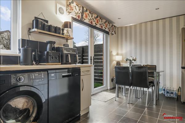The accommodation is in walk in condition comprising of a bright and spacious front facing lounge which is perfect for entertaining and relaxing. This room flows seamlessly through to the kitchen which is off to the rear of the house offering space for dining. The kitchen area has a great range of wall and floor mounted storage units along with complimentary work surfaces. It also offers a selection of integrated appliances, space for additional free standing appliances complete with a dining area and patio door access to the rear garden. The upper level of the property offers three generous sized bedrooms comprising of two spacious double and a larger size single. All of the bedrooms benefit from fitted carpet along with offering fitted storage cupboards. The bathroom which comprises of a three piece white suite incorporating an overhead shower unit and screen, complete with full wall and floor tiling. Internally the property is further enhanced with a system of gas central heating and double glazing throughout.