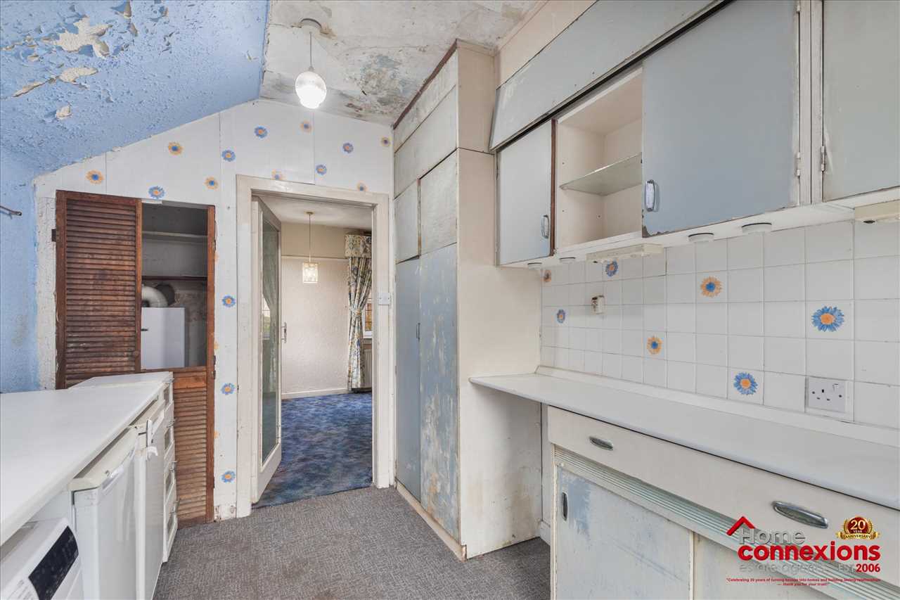 The house is thoughtfully laid out to include a bright reception hallway, a welcoming living room, a well appointed rear kitchen and three well proportioned bedrooms served by a fitted shower room. Given the degree of modernisation required viewers are advised to look at the property as a blank canvas ready for your own style and finishing touches. Externally, the property benefits from private gardens to both the front and rear, once landscaped would be perfect for outdoor enjoyment and offering excellent potential for landscaping or entertaining. It also boasts a large multi car driveway offering off street parking enhancing everyday convenience.