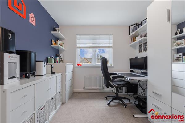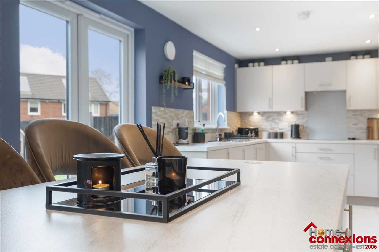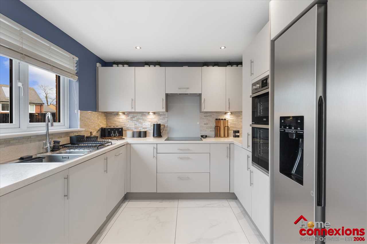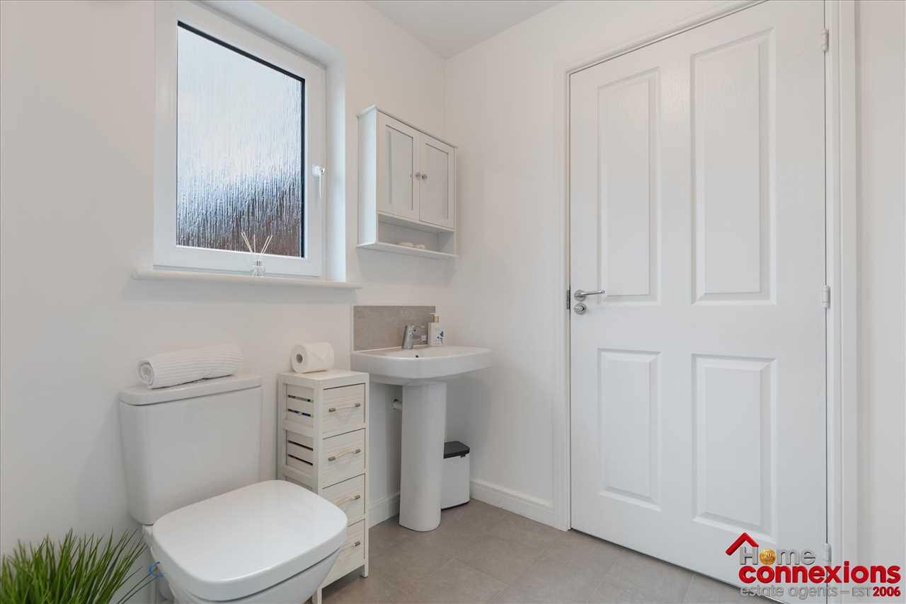 The property comprises of four well proportioned double bedrooms, four modern bathrooms (including two en-suites, main bathroom & lower level w.c.) and a beautifully fitted open plan kitchen dining family room occupying the full rear area of the house. It has been fitted to include a great selection of wall and floor mounted units along with complimentary worktops and feature focal island. There is a selection of integrated appliances. space for additional free standing appliances, wall tiling and complete with space for eating and relaxing. The kitchen continues to impress with a light and airy open plan family area boasting a feature media wall and complete with patio doors leading out to the rear garden. The lower level is complete with two large storage cupboards as well as access to the first to four bathrooms.
